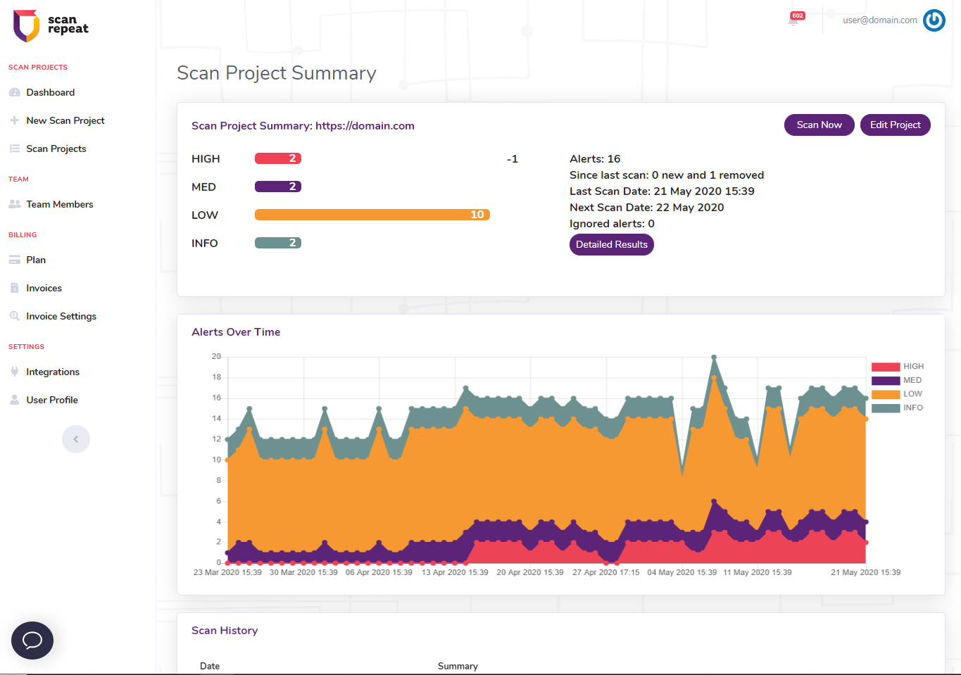 Elevator Pitch: ScanRepeat is Google Analytics for your web application security. We keep SaaS and e-commerce web applications safe with daily security scans looking for potential security holes and GDPR/CCPA sensitive data leaks so that development can receive immediate feedback and move fast without breaking things.