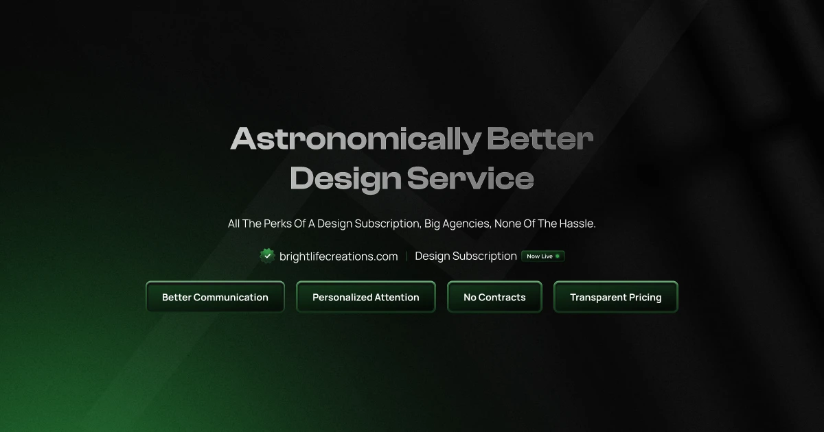 Elevator Pitch: At Bright Life Creations, we transform brands with personalized, high-quality design services tailored to meet the unique needs of your business. Our subscription model offers unlimited design requests, fast 48-hour turnarounds, and flat, transparent pricing, ensuring you receive consistent, top-notch designs without the hassle of managing multiple freelancers or enduring lengthy hiring processes.