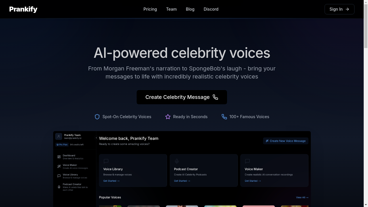 Tagline: Send AI-powered celebrity prank calls, birthday wishes, and more to anyone, anywhere, anytime.