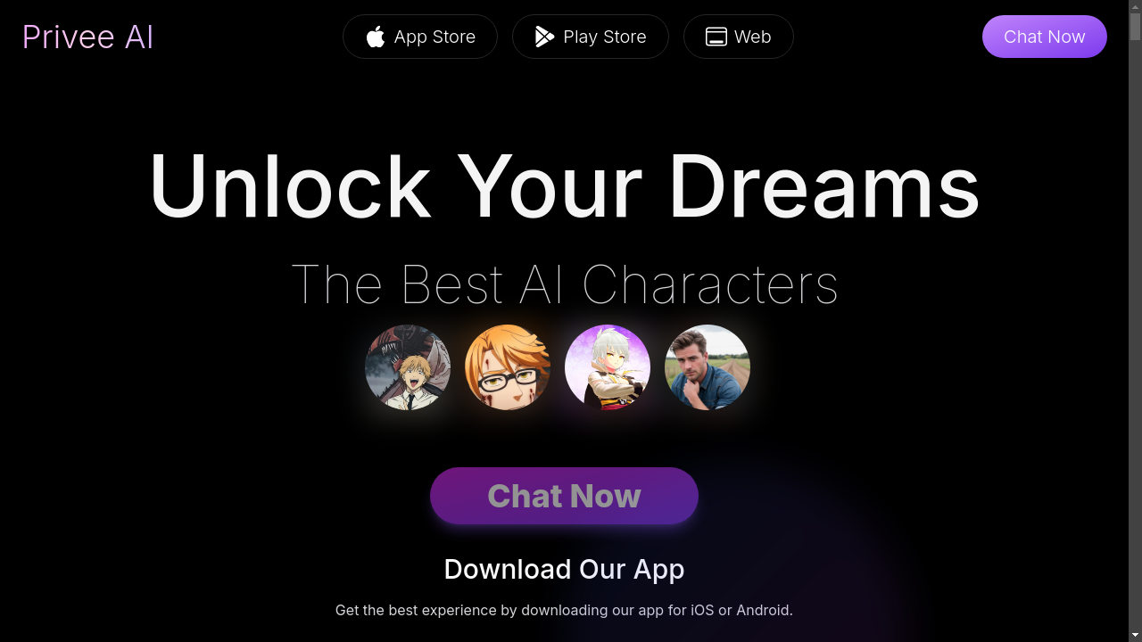 Elevator Pitch: Privee AI offers lifelike conversations with custom AI Chatbot characters, perfect for chatting, roleplaying, and writing stories. Create your own unique AI chatbots or interact with pre-built characters from fantasy, anime, romance, books and more.