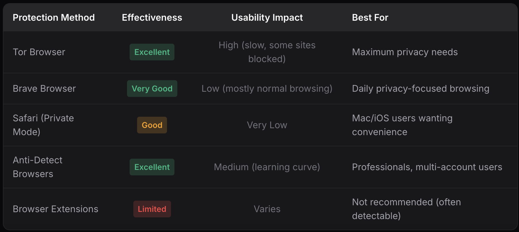 In the digital age, websites employ sophisticated techniques to track users by creating unique browser fingerprints—combinations of device and browser characteristics that can identify individuals with high accuracy. Research indicates that modern fingerprinting tools can achieve a 95.8% accuracy rate in identifying users. (Source: https://anti-detect.com/) This pervasive tracking poses significant privacy concerns for internet users who wish to maintain anonymity online.