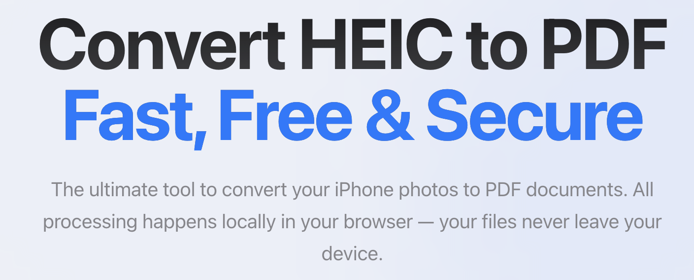Tagline: Convert HEIC to PDF files in seconds with our free HEIC converter.
