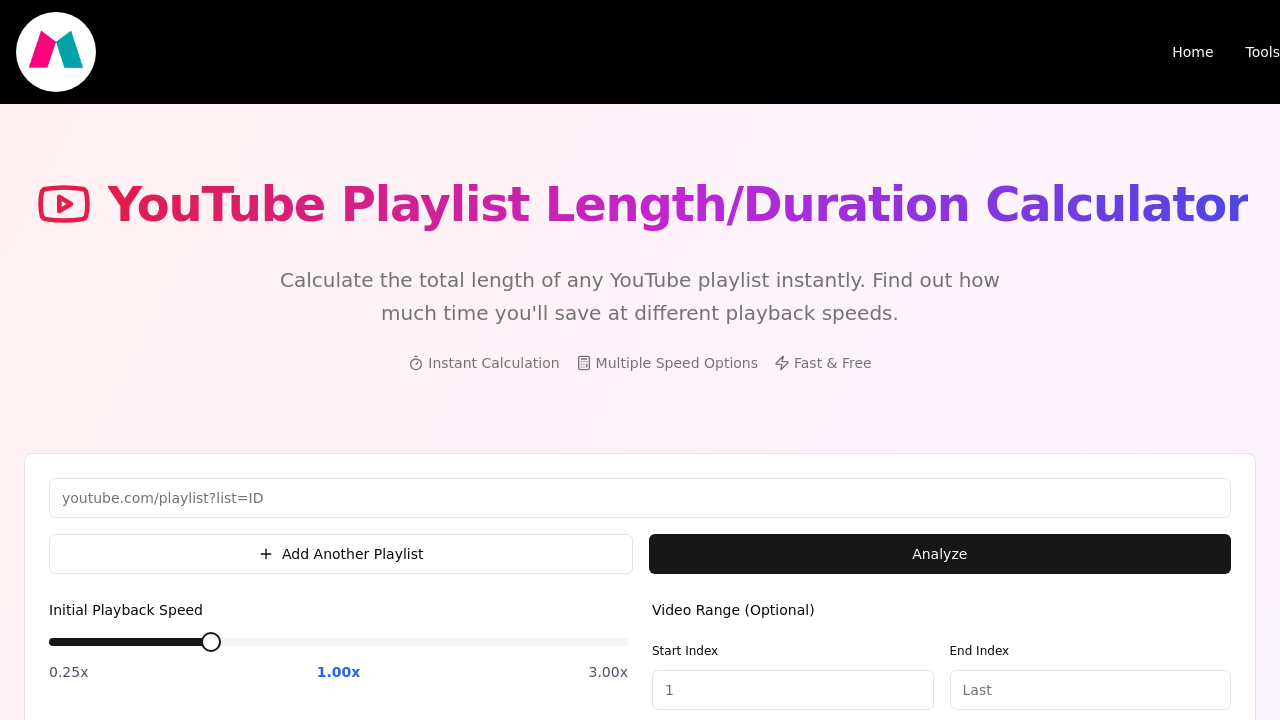 Tagline: Calculate YouTube playlist lengths—100% free!