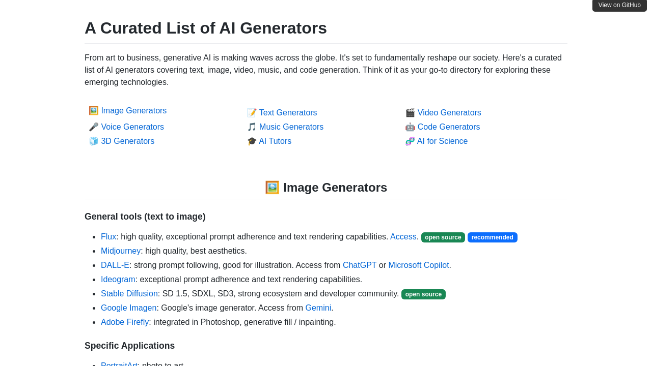 Tagline: A Curated List of AI Generators