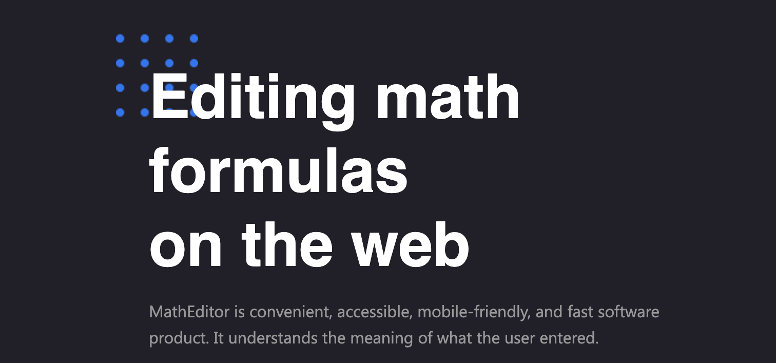 Tagline: MathEditor is a convenient, accessible, mobile-friendly WYSIWYG editor
