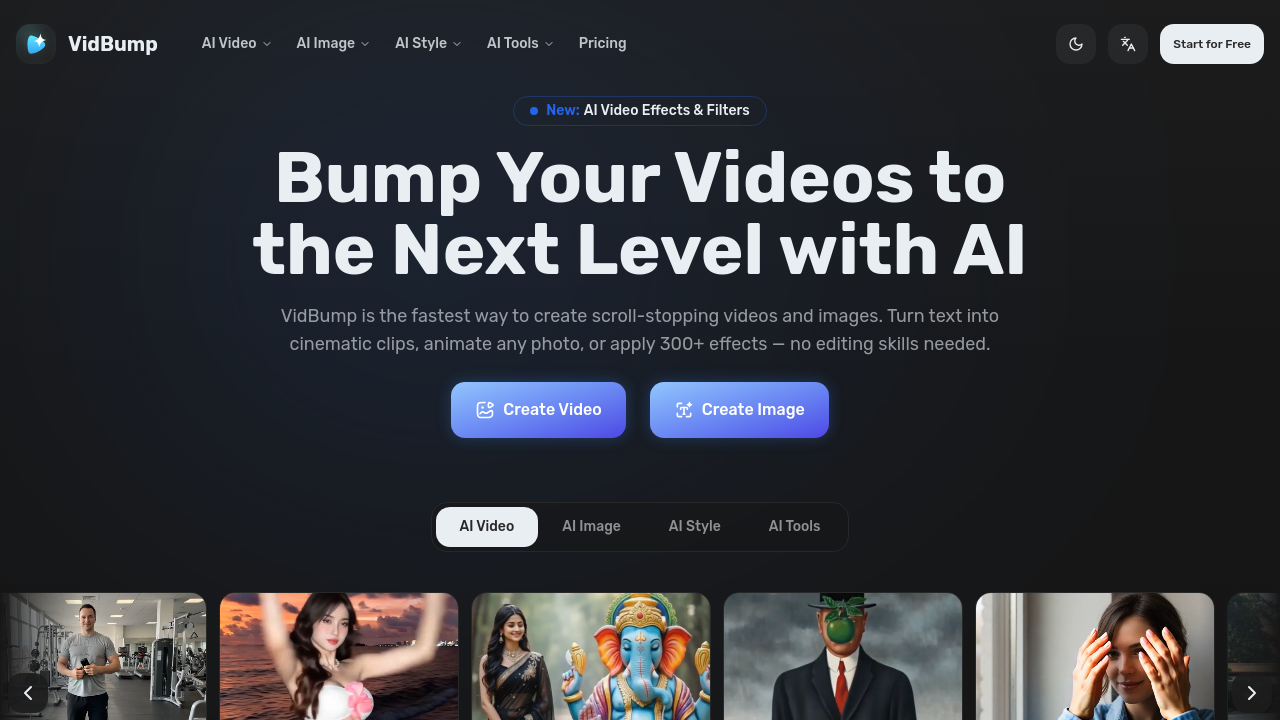 VidBump provides a suite of AI-powered tools designed to streamline video and image creation: