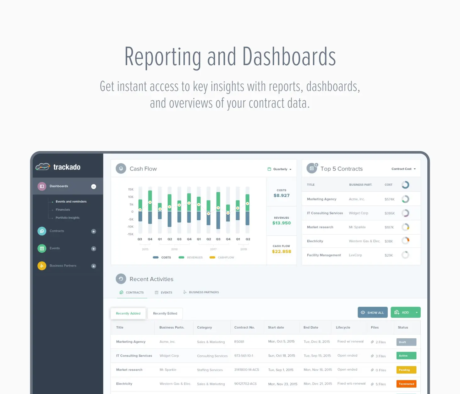 Tagline: Trackado is the powerful, easy-to-use and beautiful contract management solution.